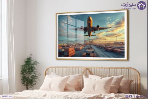 تابلوه مودرن إقلاع الطائرة وقت الغروب