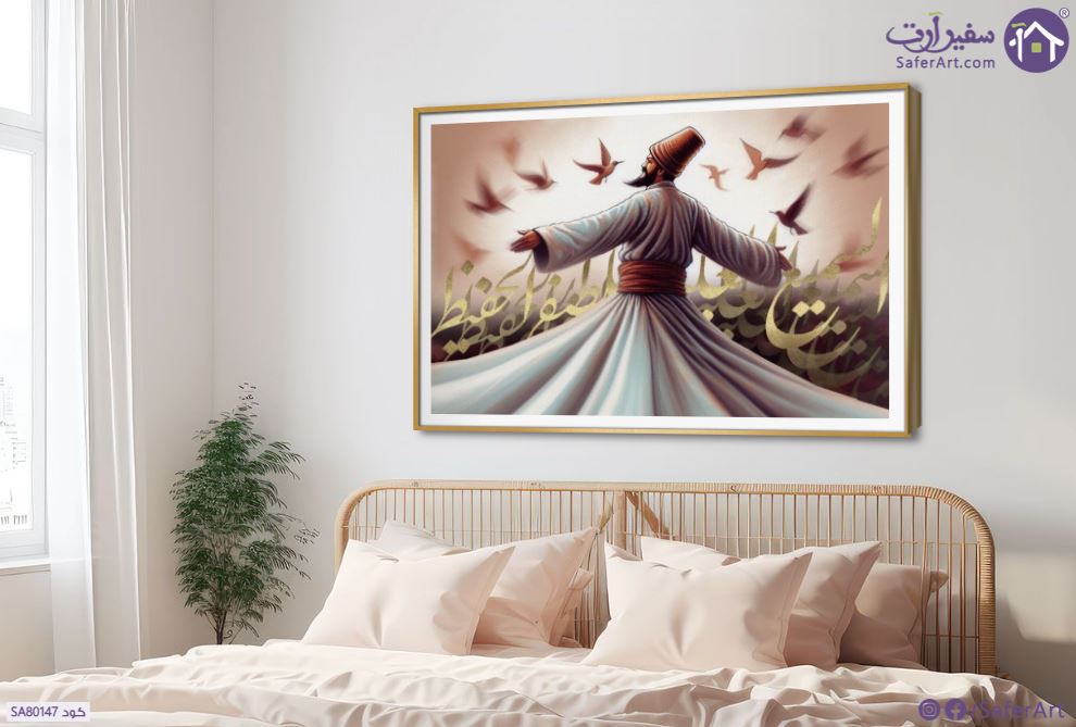 تابلوه مودرن بتصميم مستوحى من الفن الصوفى و الابتهالات الصوفية بالوان بدرجات البنى و لمسات من الذهبى مع اسماء الله الحسنى فى الخلفية, متوفر بمقاسات متعددة يمكنك اختيار او تغيير المقاس عند الطلب ,بتصميم مميز لـ تابلوهات مودرن, تابلوهات مودرن , لوحات فنية مودرن المولوية - الصوفية, اسلامى - ايات قرآنية و خط عربى , التابلوه يغلب عليه الالوان بنى - بيج, فضى – ذهبى , و مصمم بالشكل التالى 1 قطعه , بالعرض, ببرواز, برواز SF9, برواز ذهبى, مستطيل , مناسب لديكور حوائط غرفة المعيشة , و هو يتميز بالسمات التالية : ديجيتال آرت, كتابات و حروف, لوحات فنية , متوفر الان فى مصر و يأتى جاهز للتركيب مع دليل التركيب و اكسسوارات التركيب اللازمه