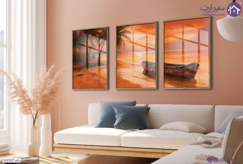 لوحة مودرن لانعكاش ضوء الشمس وقت الغروب على مياه البحر يرسو على شاطئ نخيل ومركب قديمة في أجواء هادئة وحالمة., متوفر بمقاسات متعددة يمكنك اختيار او تغيير المقاس عند الطلب ,بتصميم مميز لـ تابلوهات مودرن, تابلوهات مودرن , لوحات فنية مودرن شاطئ البحر, قوارب و مراكب, بحار و شواطئ و مراكب , التابلوه يغلب عليه الالوان اللون الواحد, برتقالى , و مصمم بالشكل التالى 3 قطع, متعدد القطع ( اى عدد ) , اكريليك, بالعرض, ببرواز, برواز خشبى, مستطيل , مناسب لديكور حوائط غرفة الاستقبال, غرفة المعيشة, مدخل المنزل, مكاتب – شركات - اعمال , و هو يتميز بالسمات التالية : الوان زيتية - اكريليك, لوحات فنية, مودرن , متوفر الان فى مصر و يأتى جاهز للتركيب مع دليل التركيب و اكسسوارات التركيب اللازمه