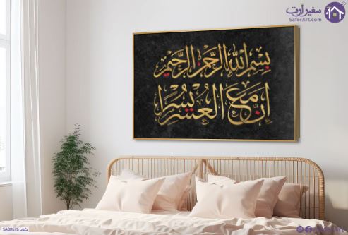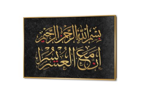 تابلوه مودرن - سورة الشرح - { إنَّ مَعَ العُسْرِ يُسْراً } بدرجات الذهبى على خلفيه من الللون الاسود, متوفر بمقاسات متعددة يمكنك اختيار او تغيير المقاس عند الطلب ,بتصميم مميز لـ تابلوهات مودرن, تابلوهات مودرن , لوحات فنية مودرن ايات قرآنية و خط عربى, اسلامى - ايات قرآنية و خط عربى , التابلوه يغلب عليه الالوان اسود, الوان داكنة, فضى – ذهبى , و مصمم بالشكل التالى 1 قطعه , بالعرض, ببرواز, برواز ذهبى, مستطيل , مناسب لديكور حوائط غرفة المعيشة, مدخل المنزل, مكاتب – شركات - اعمال , و هو يتميز بالسمات التالية : ديجيتال آرت, قابل للتعديل, كتابات و حروف, مودرن , متوفر الان فى مصر و يأتى جاهز للتركيب مع دليل التركيب و اكسسوارات التركيب اللازمه