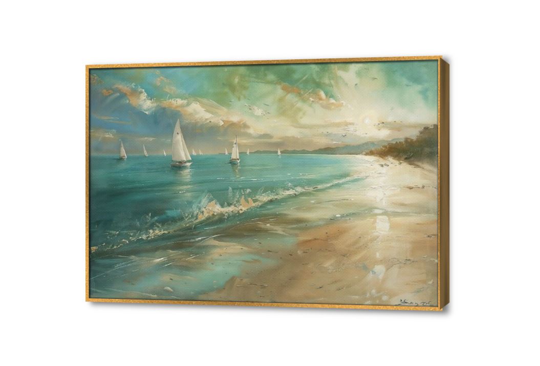 لوحة فنية مودرن منظر طبيعي للشاطئ وأمواج البحر ومراكب شراعية باللون الأبيض في منظر طبيعي خلاب .. , متوفر بمقاسات متعددة يمكنك اختيار او تغيير المقاس عند الطلب ,بتصميم مميز لـ تابلوهات مودرن, تابلوهات مودرن , لوحات فنية مودرن امواج, شاطئ البحر, بحار و شواطئ و مراكب , التابلوه يغلب عليه الالوان اخضر - زيتى, بنى - بيج , و مصمم بالشكل التالى 1 قطعه , بالعرض, ببرواز, برواز ذهبى, مستطيل , مناسب لديكور حوائط غرفة الاستقبال, غرفة المعيشة, مدخل المنزل, مكاتب – شركات - اعمال , و هو يتميز بالسمات التالية : الوان زيتية - اكريليك, لوحات فنية, مودرن , متوفر الان فى مصر و يأتى جاهز للتركيب مع دليل التركيب و اكسسوارات التركيب اللازمه