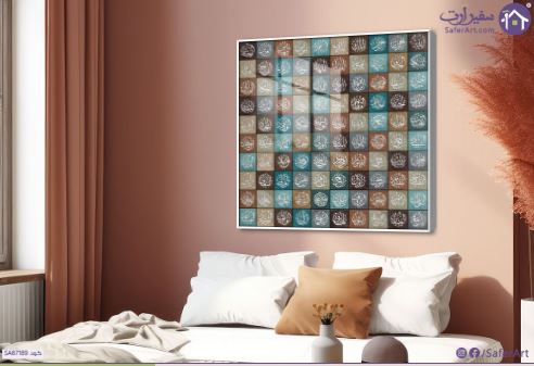 تابلوه مودرن كانفس اسماء الله الحسنى مربعات بنى و تركواز