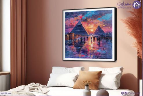 لوحات فنية منظر خيالى لاهرامات الجيزه بالوان متعددة