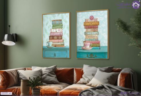 تابلوه حائط يمثل قطعتين من الفن الهادئ، يصور كل منهما مجموعة من الكتب العتيقة الملونة مكدسة بعناية على طاولة تركواز كلاسيكية بجانب فنجان شاي رقيق مع خلفية من ورق الحائط المزخرف بالزهور والنباتات، مما يخلق لوحة فنية باسلوب فينتاج يجمع بين التصوير الفوتوغرافي والديجيتال ارت ليضفي احساس بالهدوء والدفء على ديكور منزلك., متوفر بمقاسات متعددة يمكنك اختيار او تغيير المقاس عند الطلب ,بتصميم مميز لـ تابلوهات مودرن, تابلوهات مودرن , لوحات فنية مودرن هوايات , التابلوه يغلب عليه الالوان ابيض - اوف وايت, اخضر - زيتى, ازرق - تركواز, بينك – فوشيا, درجات الباستيل, متعدد الالوان , و مصمم بالشكل التالى 2 قطعه, متعدد القطع ( اى عدد ) , بالطول, ببرواز, برواز ذهبى, مستطيل , مناسب لديكور حوائط غرفة الاستقبال, غرفة المعيشة, غرفة النوم, غرفة بنات, مكاتب – شركات - اعمال , و هو يتميز بالسمات التالية : ديجيتال آرت, عتيق - فينتاج, مودرن , متوفر الان فى مصر و يأتى جاهز للتركيب مع دليل التركيب و اكسسوارات التركيب اللازمه