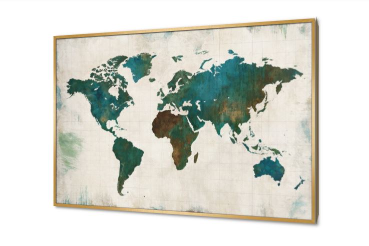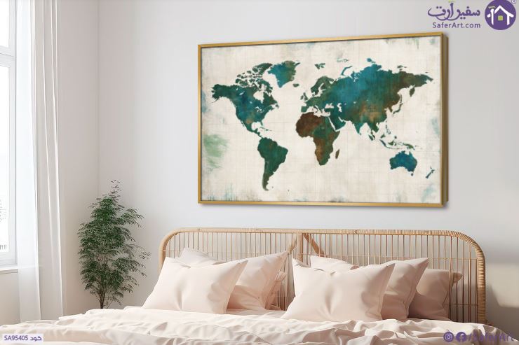 تابلوه حائط لخريطة العالم بتصميم فني فريد يجمع بين المظهر العتيق واللمسة المودرن حيث تتداخل الالوان بدرجات الازرق والبني بأسلوب الالوان المائية فوق خلفية باللون الاوف وايت مع خطوط شبكية بسيطة مما يضيف للوحة عمقا وبعدا جغرافيا وجماليا ويجعلها قطعة ديكور مميزة وملهمة لمحبي السفر والاستكشاف., متوفر بمقاسات متعددة يمكنك اختيار او تغيير المقاس عند الطلب ,بتصميم مميز لـ تابلوهات مودرن, تابلوهات مودرن , لوحات فنية مودرن اعمال و شركات, اماكن و مدن و مباني, خرائط, سياحة و سفر , التابلوه يغلب عليه الالوان ابيض - اوف وايت, اخضر - زيتى, بنى - بيج , و مصمم بالشكل التالى 1 قطعه , بالعرض, ببرواز, برواز ذهبى, مستطيل , مناسب لديكور حوائط غرفة الاستقبال, غرفة شباب, مدخل المنزل, مكاتب – شركات - اعمال , و هو يتميز بالسمات التالية : الوان مائية, بسيط و هادئ, ديجيتال آرت, عتيق - فينتاج, مودرن , متوفر الان فى مصر و يأتى جاهز للتركيب مع دليل التركيب و اكسسوارات التركيب اللازمه