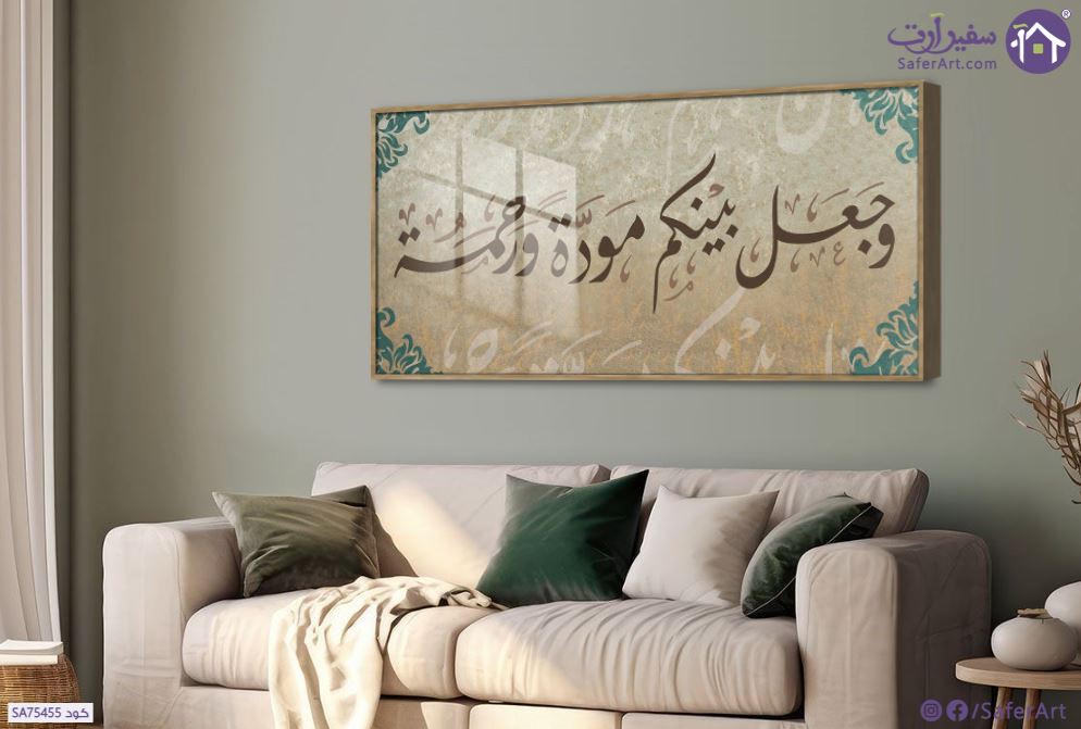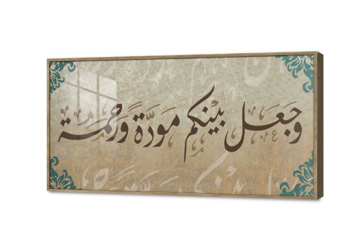 تابلوه مودرن - وجعل بينكم موده و رحمه - بخط عربى رائع على خلفيه باللون البيج مع لمسات من البنى و التركواز, متوفر بمقاسات متعددة يمكنك اختيار او تغيير المقاس عند الطلب ,بتصميم مميز لـ تابلوهات مودرن, تابلوهات مودرن , لوحات فنية مودرن ايات قرآنية و خط عربى, اسلامى - ايات قرآنية و خط عربى , التابلوه يغلب عليه الالوان بنى - بيج , و مصمم بالشكل التالى 1 قطعه , بالعرض, اكريليك, ببرواز, برواز خشبى, مستطيل , مناسب لديكور حوائط غرفة الاستقبال, غرفة المعيشة, غرفة النوم, مدخل المنزل , و هو يتميز بالسمات التالية : ديجيتال آرت, قابل للتعديل, كتابات و حروف, مودرن , متوفر الان فى مصر و يأتى جاهز للتركيب مع دليل التركيب و اكسسوارات التركيب اللازمه