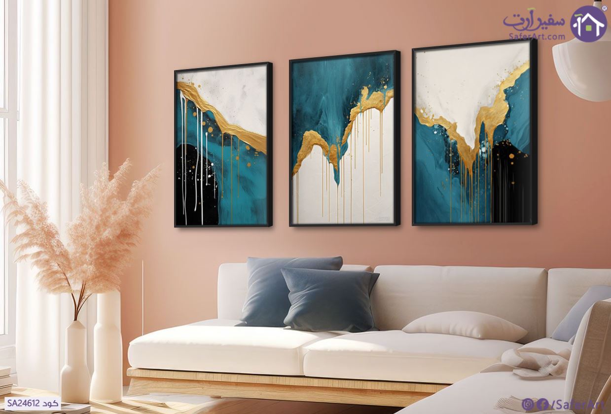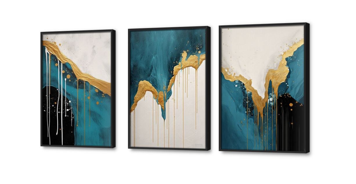 تابلوه تجريدى مصمم بطريقه مودرن مكون من ثلاث قطع بخلفيه رمادى والوان متناسقه من درجات التركواز والاسود والذهبى بشكل جذاب لمحبى الفن التجريدى, متوفر بمقاسات متعددة يمكنك اختيار او تغيير المقاس عند الطلب ,بتصميم مميز لـ تابلوهات مودرن, تابلوهات مودرن , لوحات فنية مودرن تجريدي , التابلوه يغلب عليه الالوان ازرق - تركواز, اسود, فضى – ذهبى , و مصمم بالشكل التالى 3 قطع, متعدد القطع ( اى عدد ) , بالعرض, ببرواز, برواز اسود, مستطيل , مناسب لديكور حوائط غرفة الاستقبال, مكاتب – شركات - اعمال , و هو يتميز بالسمات التالية : الوان زيتية - اكريليك, لوحات فنية , متوفر الان فى مصر و يأتى جاهز للتركيب مع دليل التركيب و اكسسوارات التركيب اللازمه