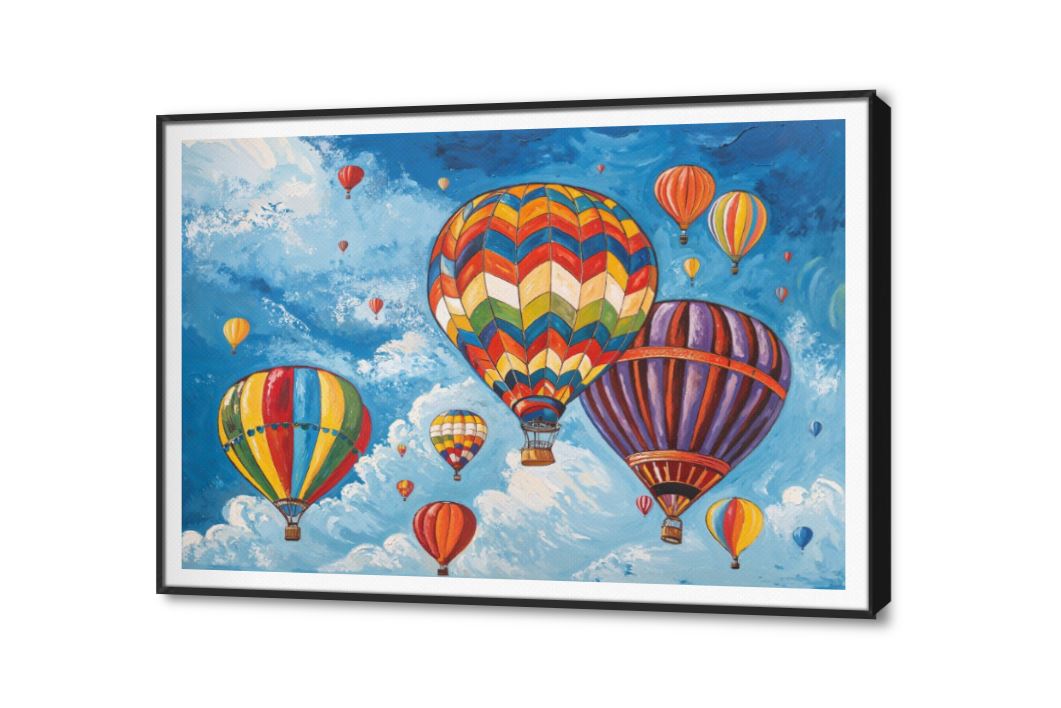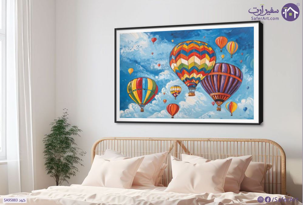 تابلوه مودرن يصور مجموعة من المناطيد الملونة الزاهية وهى تطفو بسلام بين السحاب فى سماء زرقاء صافية، مرسوم بأسلوب فني انطباعي معاصر يستخدم لمسات فرشاة جريئة وواضحة تبرز كثافة الالوان وتضفى على اللوحة حيوية وعمق، مما يجعلها قطعة فنية مبهجة ومفعمة بالحياة تناسب اى ديكور عصرى يبحث عن اضافة لمسة من الالوان وروح المغامرة والبهجة., متوفر بمقاسات متعددة يمكنك اختيار او تغيير المقاس عند الطلب ,بتصميم مميز لـ تابلوهات مودرن, تابلوهات مودرن , لوحات فنية مودرن اعمال و شركات, سحاب, سياحة و سفر, شمسية و مظلات, مناطيد هوائية, مناظر طبيعية , التابلوه يغلب عليه الالوان ازرق - تركواز, قوى و زاهى, متعدد الالوان , و مصمم بالشكل التالى 1 قطعه , بالعرض, ببرواز, برواز اسود, مستطيل , مناسب لديكور حوائط غرفة اطفال, غرفة المعيشة, غرفة شباب, مدخل المنزل, مكاتب – شركات - اعمال , و هو يتميز بالسمات التالية : الوان زيتية - اكريليك, الوان مائية, لوحات فنية, مظهر بارز, مودرن , متوفر الان فى مصر و يأتى جاهز للتركيب مع دليل التركيب و اكسسوارات التركيب اللازمه