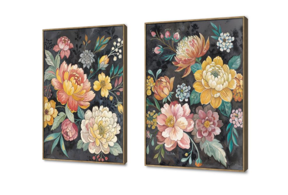 تابلوهات ديكور مكونة من قطعتين بتصميم فني يجمع بين باقات الزهور الملونة بالوان زاهية مثل الاصفر و الوردي و الاحمر و بين الخلفية الداكنة التي تبرز جمال التفاصيل المرسومة باسلوب فني كلاسيكي معاصر، حيث تتداخل الالوان و الظلال لتعطي احساسا بالعمق و الحيوية وتضيف لمسة من الاناقة والدفء لديكور منزلك., متوفر بمقاسات متعددة يمكنك اختيار او تغيير المقاس عند الطلب ,بتصميم مميز لـ تابلوهات مودرن, تابلوهات مودرن , لوحات فنية مودرن اعمال يدوية و اخرى, اوراق شجر - نباتات, مميزة و مختارة, ورود - زهور - نباتات , التابلوه يغلب عليه الالوان اخضر - زيتى, اسود, اصفر, بينك – فوشيا, قوى و زاهى, متعدد الالوان , و مصمم بالشكل التالى 2 قطعه, متعدد القطع ( اى عدد ) , بالطول, ببرواز, برواز خشبى, مستطيل , مناسب لديكور حوائط غرفة الاستقبال, غرفة المعيشة, غرفة النوم, مدخل المنزل, مكاتب – شركات - اعمال , و هو يتميز بالسمات التالية : الوان زيتية - اكريليك, ديجيتال آرت, عتيق - فينتاج, كلاسيك – نيو كلاسيك, لوحات فنية, مظهر بارز, مودرن , متوفر الان فى مصر و يأتى جاهز للتركيب مع دليل التركيب و اكسسوارات التركيب اللازمه