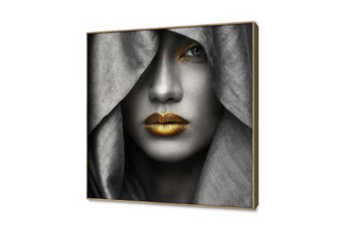 تابلوه مودرن يصور ببراعة وجه امرأة غامضة يغطيه وشاح رمادي بأسلوب فني يجمع بين الواقعية ولمسة من الخيال حيث يتم التركيز على الشفاه وظلال العيون باللون الذهبي البراق في حين يظل باقي التصميم بالأبيض والأسود مما يخلق تباين بصري قوي وجذاب ويضفي على اللوحة جوا من الغموض والأناقة العصرية التي تلفت الأنظار وتثير الفضول., متوفر بمقاسات متعددة يمكنك اختيار او تغيير المقاس عند الطلب ,بتصميم مميز لـ تابلوهات مودرن, تابلوهات مودرن , لوحات فنية مودرن بنات, شخصيات و وجوه, موضة – ازياء - بنات, ميك اب - تجميل , التابلوه يغلب عليه الالوان ابيض و اسود, اسود, اللون الواحد, الوان داكنة, رمادى, فضى – ذهبى , و مصمم بالشكل التالى 1 قطعه , ببرواز, برواز خشبى, مربع , مناسب لديكور حوائط غرفة الاستقبال, غرفة المعيشة, غرفة بنات, مدخل المنزل, مكاتب – شركات - اعمال , و هو يتميز بالسمات التالية : بسيط و هادئ, ديجيتال آرت, صور فوتوغرافية, مودرن , متوفر الان فى مصر و يأتى جاهز للتركيب مع دليل التركيب و اكسسوارات التركيب اللازمه