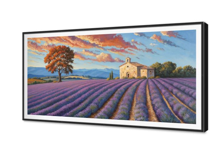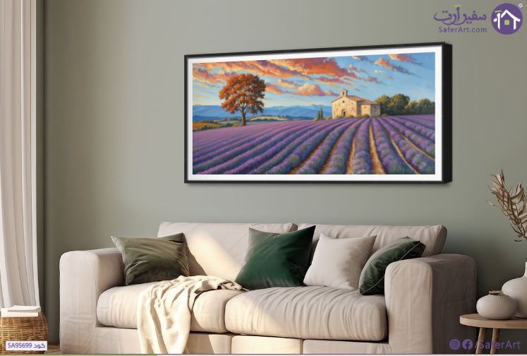 هذه اللوحات الفنية تجسد ببراعة منظرا طبيعيا خلابا لحقول اللافندر الأرجوانية التي تمتد في خطوط متناسقة نحو بيت ريفي حجري قديم، وتبرز على اليسار شجرة بألوان الخريف الدافئة تقف وحيدة، كل ذلك تحت سماء الغروب ذات السحب البرتقالية والوردية، بأسلوب فني انطباعي يستخدم ضربات فرشاة جريئة وألوان حية لإضفاء شعور بالدفء والسكينة., متوفر بمقاسات متعددة يمكنك اختيار او تغيير المقاس عند الطلب ,بتصميم مميز لـ تابلوهات مودرن, تابلوهات مودرن , لوحات فنية مودرن اشجار, اعمال و شركات, اماكن و مدن و مباني, دول و مدن مشهورة, سحاب, مبانى و هندسة معمارية, مزارع - حقول, مناظر طبيعية, ورود - زهور - نباتات , التابلوه يغلب عليه الالوان احمر - نبيتى, ازرق - تركواز, متعدد الالوان, موف – ارجوانى , و مصمم بالشكل التالى 1 قطعه , بالعرض, ببرواز, برواز SF9, برواز اسود, مستطيل , مناسب لديكور حوائط غرفة الاستقبال, غرفة المعيشة, مدخل المنزل, مكاتب – شركات - اعمال , و هو يتميز بالسمات التالية : الوان زيتية - اكريليك, بسيط و هادئ, دول البحر المتوسط, كلاسيك – نيو كلاسيك, لوحات فنية, مودرن , متوفر الان فى مصر و يأتى جاهز للتركيب مع دليل التركيب و اكسسوارات التركيب اللازمه
