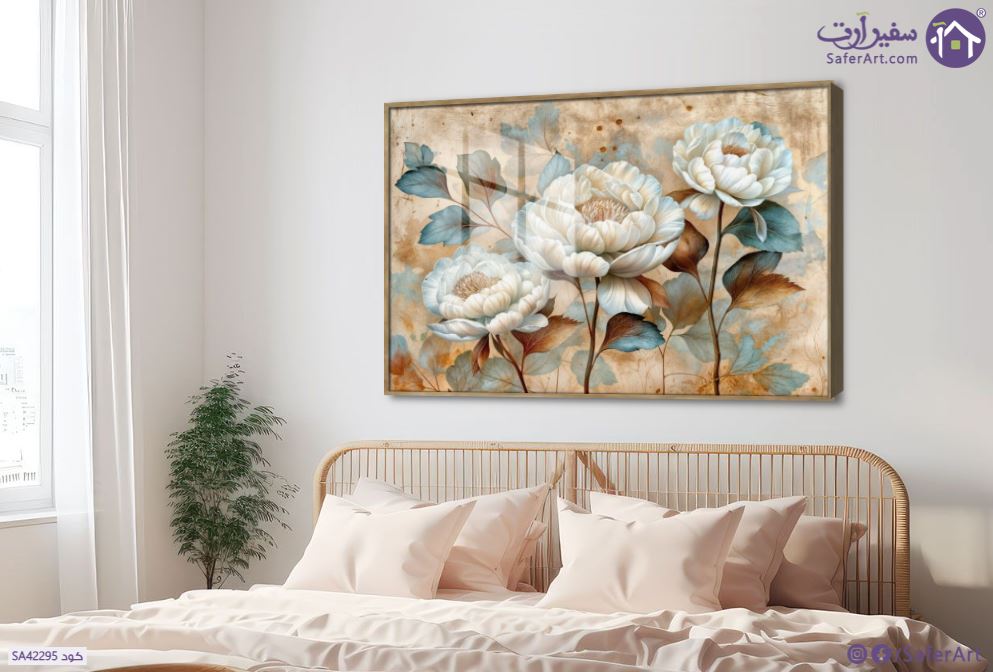 تابلوهات مودرن ورد أبيض