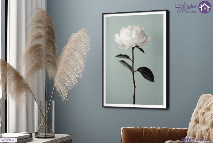تابلوه مودرن يجسد جمال زهرة الفاوانيا البيضاء المتفتحة بأناقة على ساقها وأوراقها الداكنة مقابل خلفية بلون أخضر مائل للزرقة، حيث يتميز التصميم بأسلوب فوتوغرافي بسيط ومينيماليست يركز على تفاصيل الزهرة الرقيقة ويبرز نقاء لونها الأبيض مما يضفي لمسة من الهدوء والرقي على اي جدار ويجعله قطعة فنية مثالية للديكورات الحديثة والهادئة., متوفر بمقاسات متعددة يمكنك اختيار او تغيير المقاس عند الطلب ,بتصميم مميز لـ تابلوهات مودرن, تابلوهات مودرن , لوحات فنية مودرن اوراق شجر - نباتات, ورود - زهور - نباتات , التابلوه يغلب عليه الالوان ابيض - اوف وايت, اخضر - زيتى , و مصمم بالشكل التالى 1 قطعه , بالطول, ببرواز, برواز SF9, برواز اسود, مستطيل , مناسب لديكور حوائط غرفة الاستقبال, غرفة المعيشة, غرفة النوم, غرفة بنات, مدخل المنزل, مكاتب – شركات - اعمال , و هو يتميز بالسمات التالية : بسيط و هادئ, ديجيتال آرت, صور فوتوغرافية, مودرن , متوفر الان فى مصر و يأتى جاهز للتركيب مع دليل التركيب و اكسسوارات التركيب اللازمه