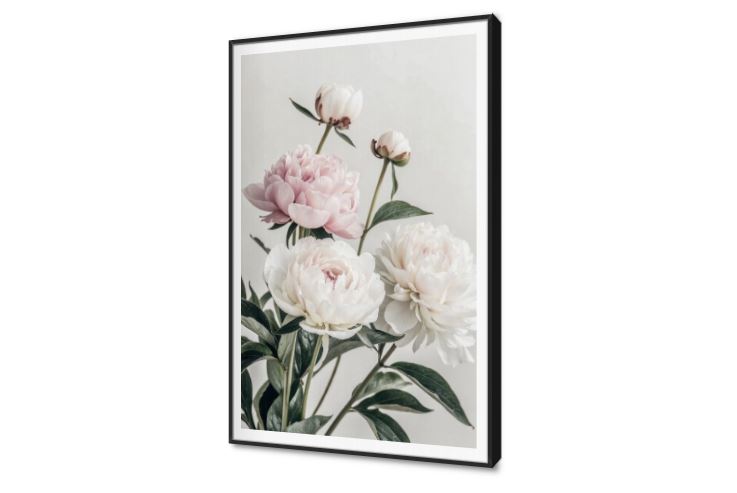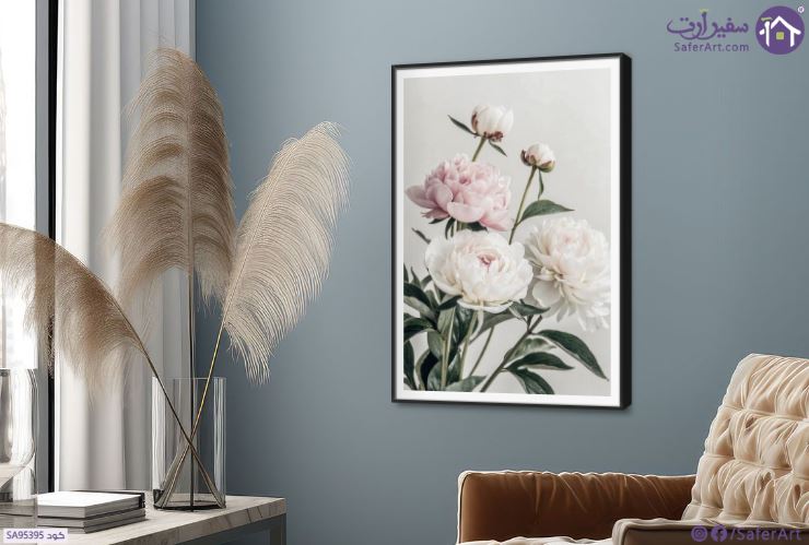 تابلوهات ديكور زهور الفاوانيا البيضاء والوردية الرقيقة