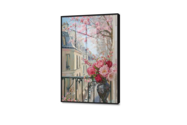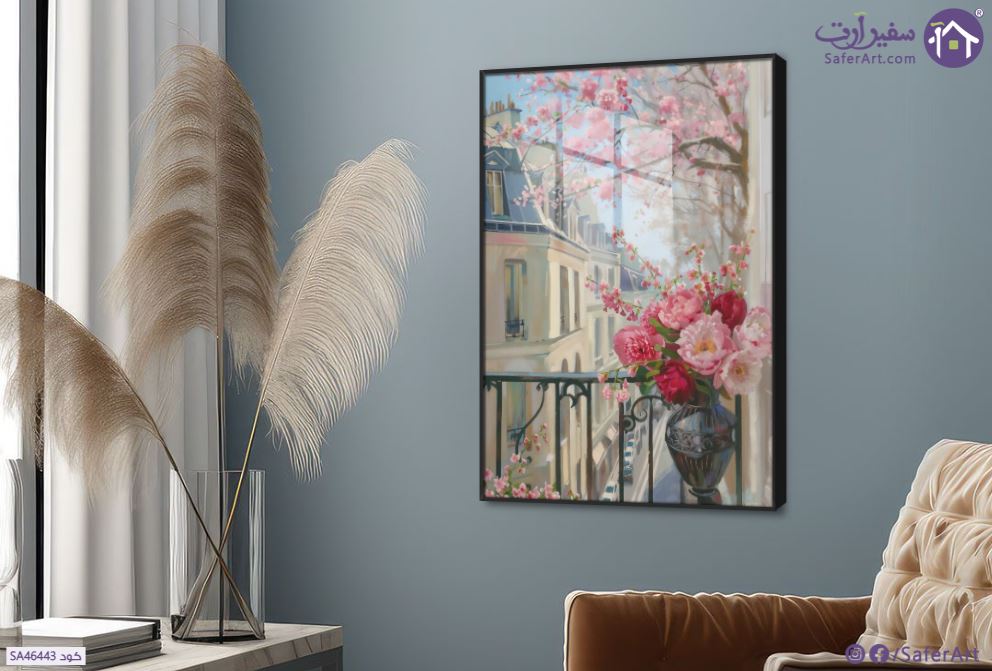 تابلوهات مودرن نافذة مزينة بالورود البينك