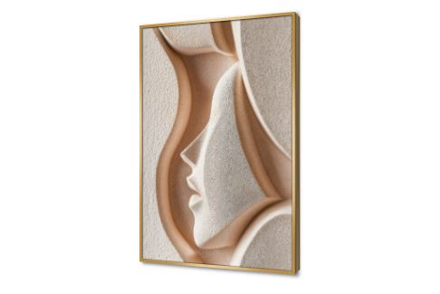 تابلوه وجه جانبى لامرأة، نحتًا مجسمًا لوجه جانبي لامرأة ذات ملامح ناعمة وأنيقة، محاطًا بأشكال منحنية، حيث يعتمد التصميم على الظل والنور لإبراز جمال الوجه وتفاصيله الدقيقة، مما يضفي عليه طابعًا فنيًا فريدًا يجمع بين الأصالة والحداثة., متوفر بمقاسات متعددة يمكنك اختيار او تغيير المقاس عند الطلب ,بتصميم مميز لـ تابلوهات مودرن, تابلوهات مودرن , لوحات فنية مودرن بنات, شخصيات و وجوه , التابلوه يغلب عليه الالوان ابيض - اوف وايت , و مصمم بالشكل التالى 1 قطعه , بالطول, ببرواز, برواز ذهبى, مستطيل , مناسب لديكور حوائط غرفة المعيشة, غرفة النوم, غرفة بنات, مدخل المنزل, مكاتب – شركات - اعمال , و هو يتميز بالسمات التالية : الوان زيتية - اكريليك, كلاسيك – نيو كلاسيك, لوحات فنية, مظهر بارز, مودرن , متوفر الان فى مصر و يأتى جاهز للتركيب مع دليل التركيب و اكسسوارات التركيب اللازمه