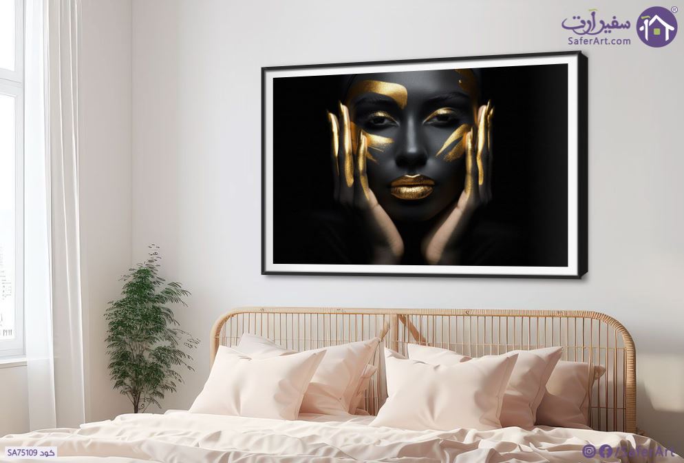 لوحة فنية لإمرأة أفريقية جميلة بخلفية ذهبية