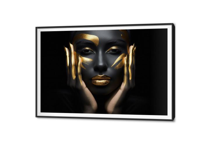 لوحة فنية لإمرأة أفريقية جميلة بخلفية ذهبية